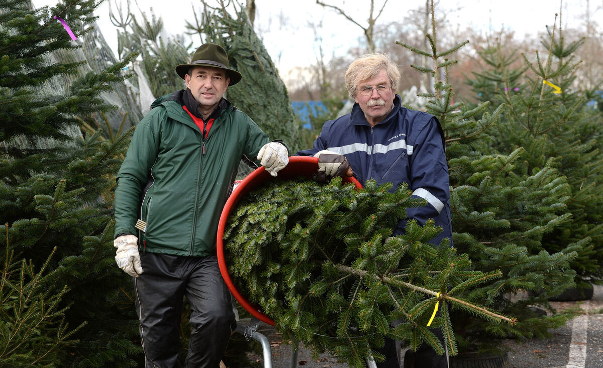 Die beiden Beschicker Rainer Schäfer (links) und Roland Stockinger gehören zum Reutlinger Christbaummarkt wie Plätzchenduft und Lichterglanz zur Adventszeit. FOTO: PIETH