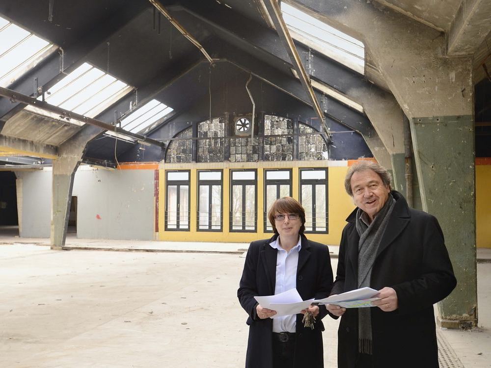 Interessante Hülle für eine neue Nutzung: Das Führungsteam der Wendler-GmbH Patricia Wagner und Walter Veit, Immobilienbeauftragter des Unternehmens, im Gebäudetrakt der ehemaligen Färberei.