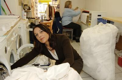 Hat ein Händchen für heiße Eisen: Sandra De Franceschi betreibt einen Wasch- und Mangelservice in der Altstadt und wird dabei tatkräftig von Inge Fucker (im Hintergrund) unterstützt.