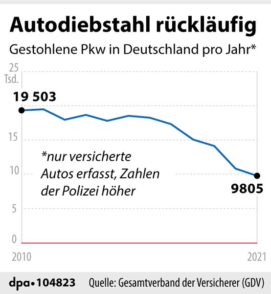 In Süddeutschland ist die Diebstahlgefahr laut Auswertung des GDV besonders niedrig. Baden-Württemberg gehört neben Bayern, Thüringen und Rheinland-Pfalz zu den sichersten Bundesländern für Autobesitzer. Am gefährlichsten ist Berlin. Dort wurden vergangenes Jahr 2.200 kaskoversicherte Pkw geklaut, das ist mehr als jeder fünfte Autodiebstahl in Deutschland.