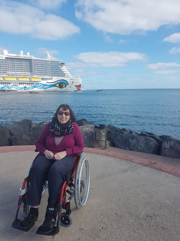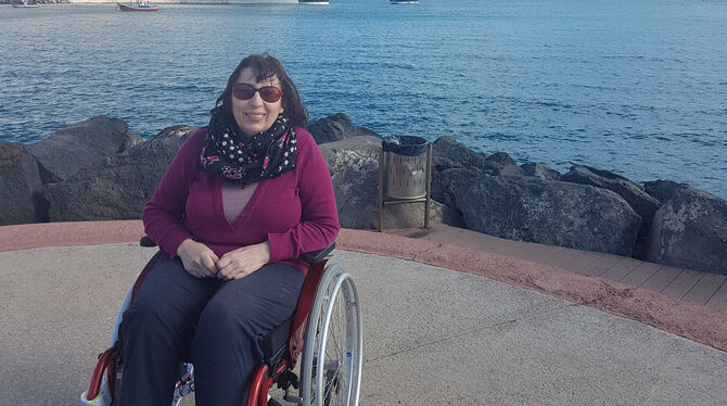 Inge Scheu im Jahr 2019, als sie trotz ALS noch mobil war.