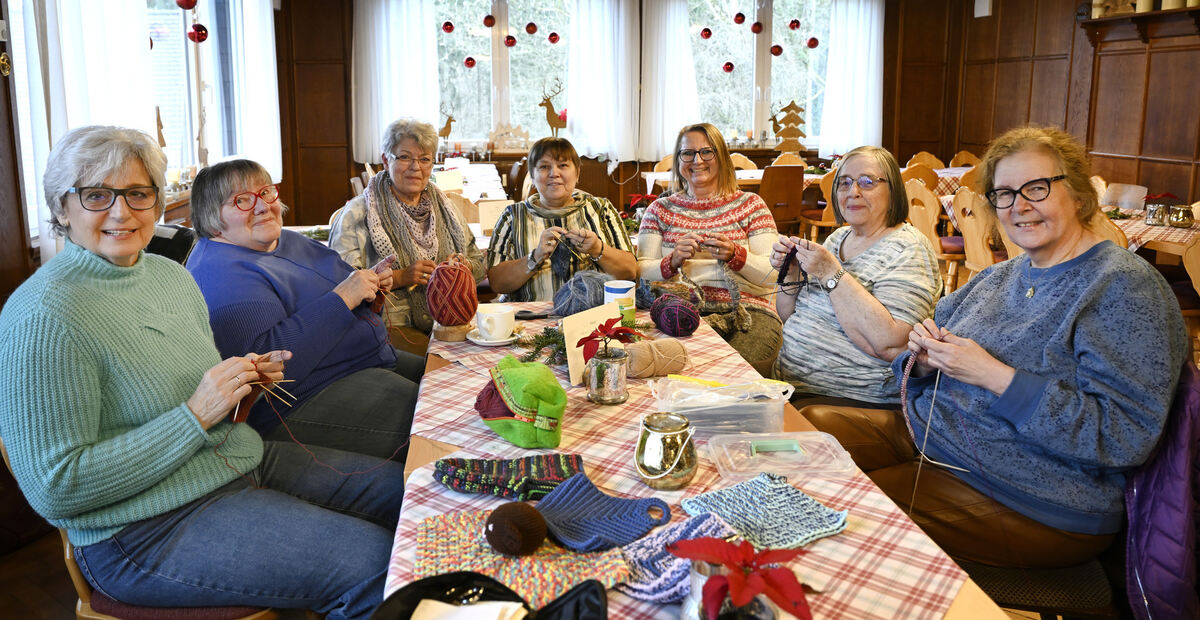 Im Kreise Gleichgesinnter handarbeitend Gutes tun: Das hat sich die Initiatorin eines noch jungen Zirkels, Gabriele Hoyh (am Kopfende des Tisches), vorgenommen und damit auch bei anderen Frauen einen Nerv getroffen.