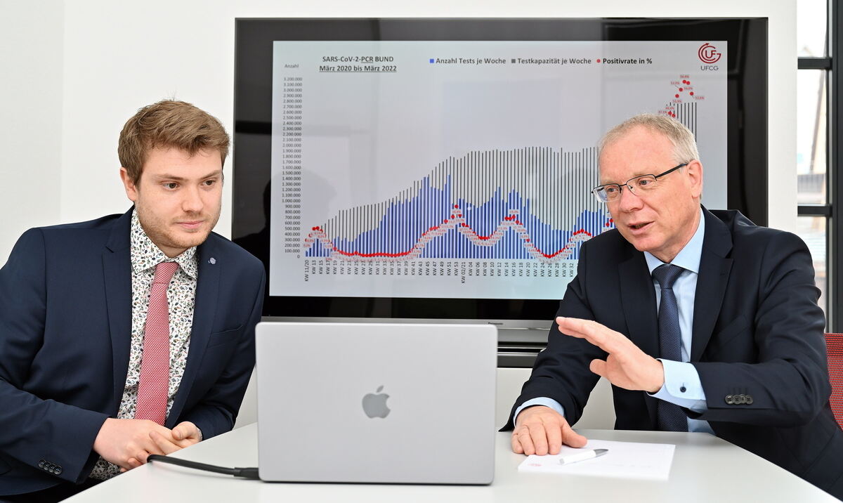 Uli Früh (rechts) und sein Sohn Marcel erheben die Daten von 182 Laboren, die zusammen mehr als 90 Prozent aller PCR-Tests in Deutschland auswerten.