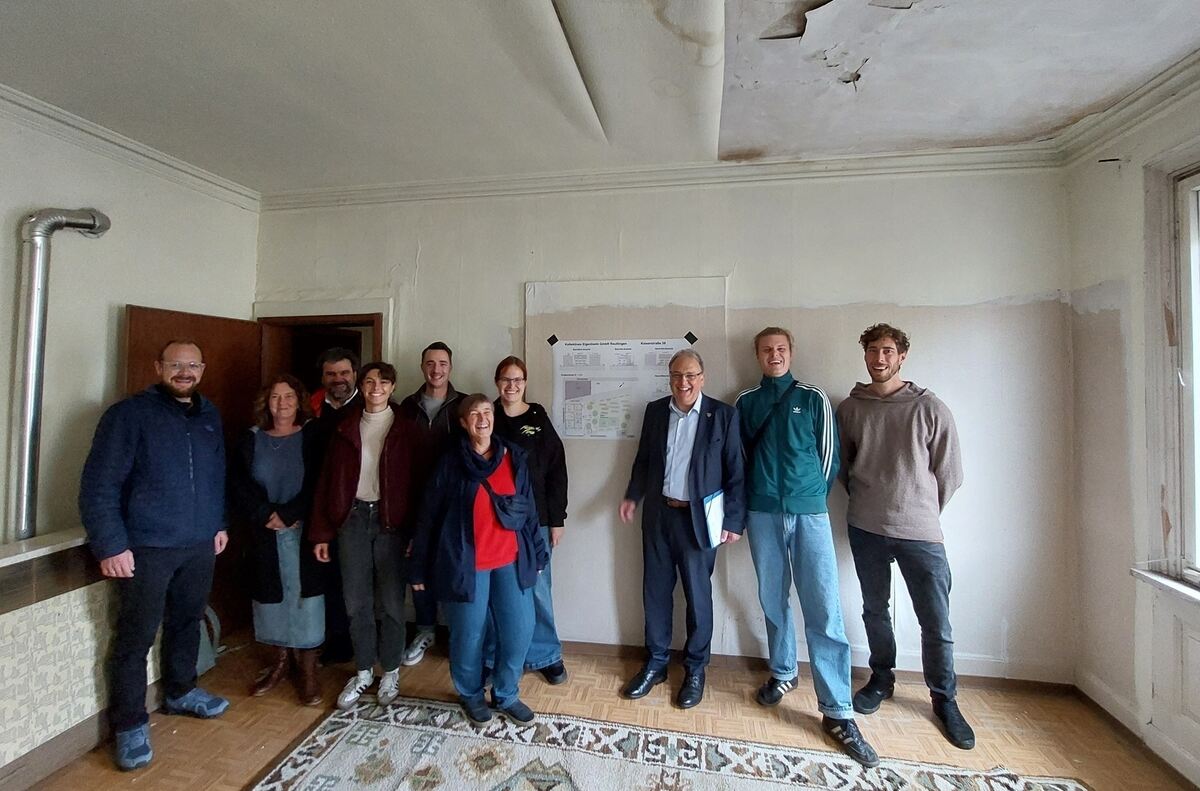 Gemeinschaftliches Wohnen in der Kaiserstraße 39 als Gemeinschaftsleistung: Oberbürgermeister Thomas Keck (Dritter von rechts mit Architekten und künftigen Hausbewohnern) hatte von Beginn an Sympathie fürs Projekt .