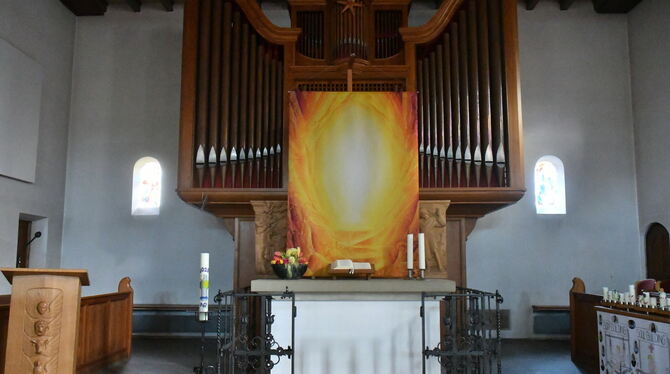 9:03 Uhr Ostern feiert den Übergang aus der Nacht in den Tag, aus dem Dunkel ins Licht - bildlich in Szene gesetzt in der Genkinger Michaelskirche. Ein Gottesdienst wird hier aber trotzdem nicht stattfinden. (mey)