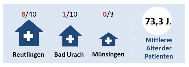 13:00 Uhr Die Reutlinger Kreiskliniken behandeln aktuell 45 Patienten wegen Covid-19 stationär, 10 von ihnen sind intensivpflichtig. Das teilt das Landratsamt auf GEA-Anfrage mit. Im Tübinger Uniklinikum werden aktuell 44 Menschen behandelt, die sich mit dem Coronavirus infiziert haben. 24 von ihnen liegen auf der Intensivstation. (kk)