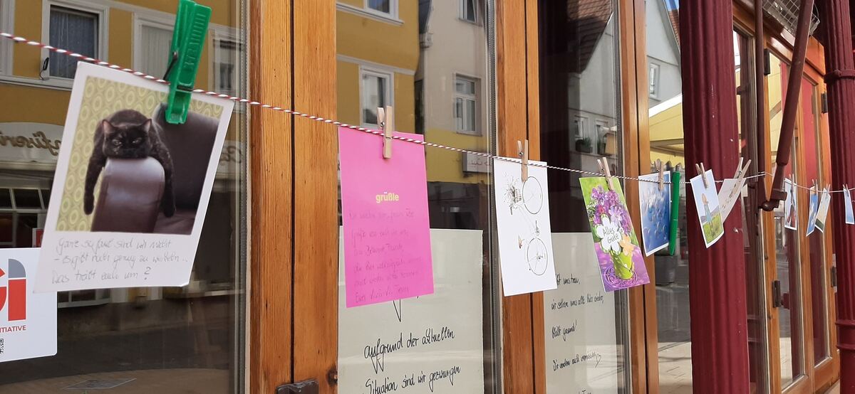 18:20 Uhr Gastronomiebetriebe bleiben weiterhin geschlossen - was aber nicht heißt, dass die Betreiber faul auf dem Sofa liegen, wie der Kater auf der Postkarte des untenstehenden Bildes. Das haben zumindest die Betreiber des »Vis a vis« in der Wilhelmstraße auf der besagten Kater-Karte betont - und ebenfalls per Postkarte alle Vorbeigehenden gleich dazu aufgerufen, Grüße ans Team oder auch an Freunde und Bekannte niederzuschreiben. Einige Karten, die an der Schnur hängen sind schon beschrieben. »Wir hoffen, dass die Krise bald vorbei ist und wir wieder bei euch sitzen und lesen können«, heißt es auf einer Karte beispielsweise. (kk)