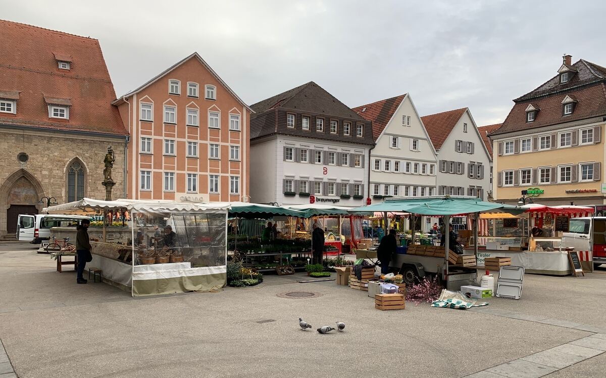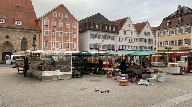 8:20 Uhr Der Reutlinger Wochenmarkt findet weiter statt, so auch heute. Nur die Kunden lassen sich nicht wirklich blicken. Dienstags ist das Gedränge nie so groß wie samstags, aber heute ist es fast gespenstisch still. (ege)