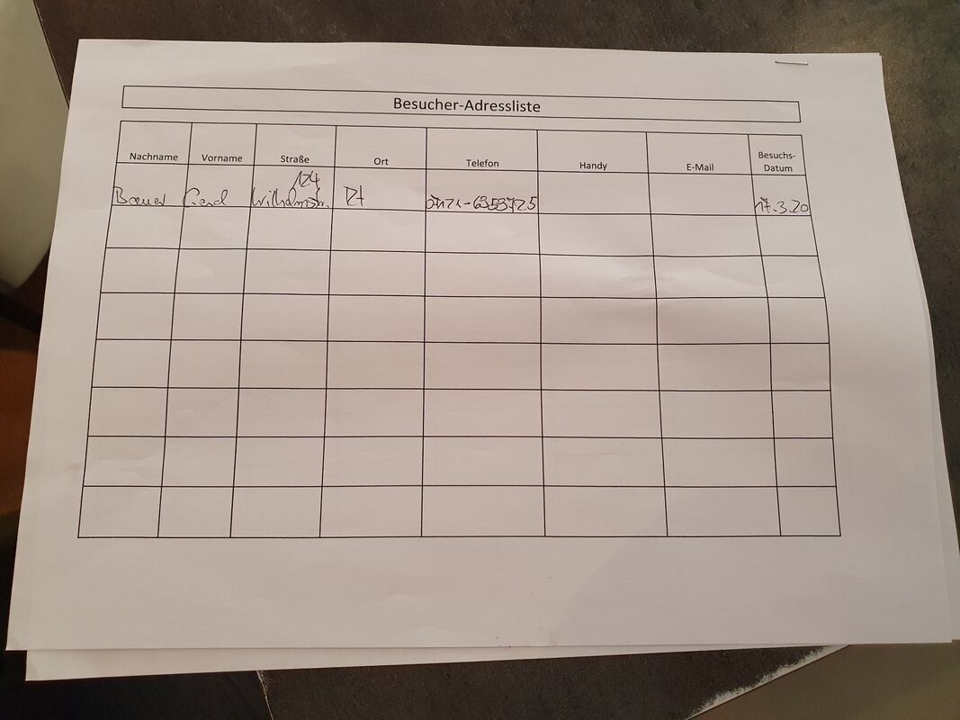 Gerd Bauer, der Inhaber der Salat- und Suppenbar in der Wilhelmstraße wusste nicht, dass die Regel schon wieder obsolet ist: Er hatte seinen Kunden weiter die Liste hingelegt, in die sie sich eintragen müssen, wenn sie im Restaurant essen wollen. »Einige Besucher haben sich heute sogar beschwert und sind wieder gegangen, als wir sie auf diese Liste aufmerksam gemacht haben«, erzählt er. Einzutragen waren persönliche Daten wie Name, Adresse und Telefonnummer. (kk/stan)