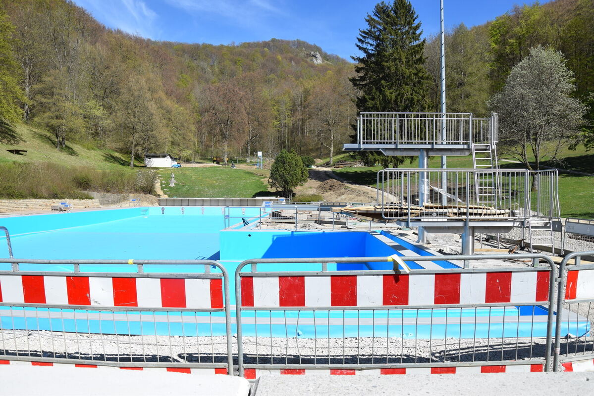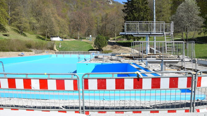 11:45 Uhr Die Sanierungsarbeiten im Eninger Freibad laufen auf Hochtouren. »Ich habe von Anfang an Druck gemacht«, erklärt Bürgermeister Alexander Schweizer mit Blick auf den Eröffnungstermin, der am 15. Mai hätte sein sollen. Die Erwartungshaltung angesichts neuer Attraktionen wie zwei großen Rutschen sei groß. Mit Mitte Mai klappt es nun wohl nicht. »Ende Mai wäre realistisch«, denkt Ortsbaumeister Rainer Klett. Zumindest was die Arbeiten im Bad betrifft. Ob die Corona-Pandemie den ganzen Anstrengungen einen Strich durch die Rechnung macht, ist offen. Bisher sagt Schweizer: »Wir hoffen, dass wir noch im Mai öffnen können.« (hai)