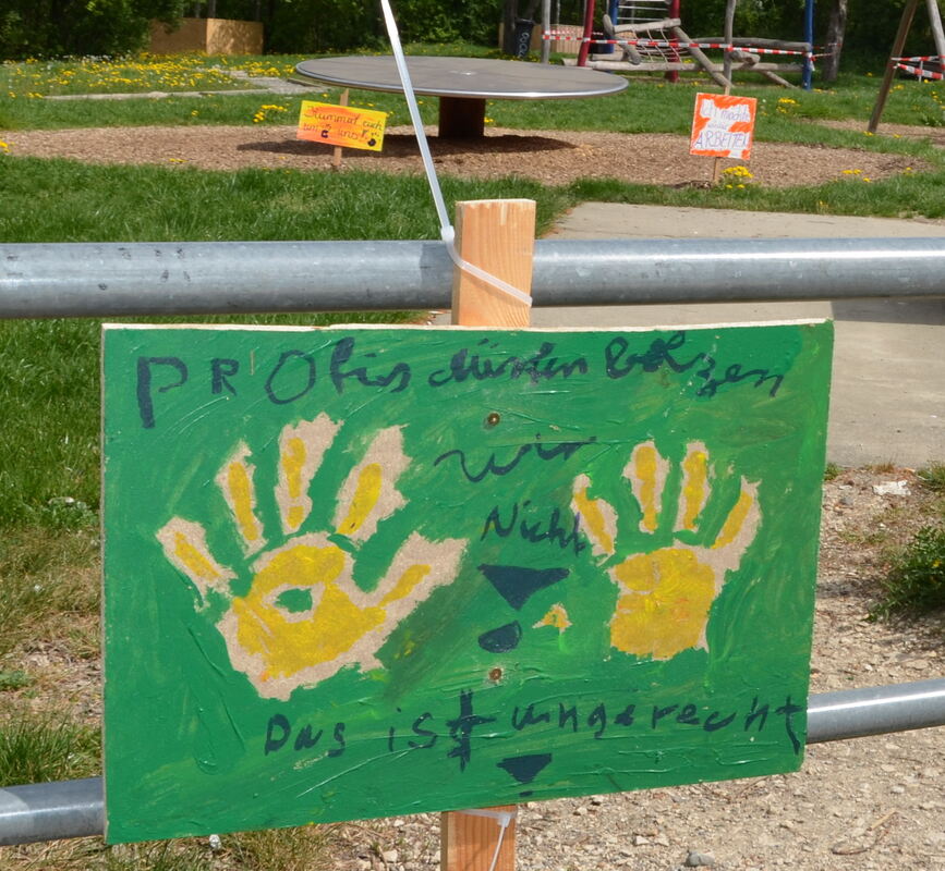 8:10 Uhr In Pfullingen scheinen einige Kinder nicht einverstanden zu sein mit den Quarantäne-Regeln für Kinder in der Coronakrise und mit den jüngsten Lockerungen. Beim Spielplatz am Ende der Arbachstraße finden sich einige Plakate mit gemaltem Protest - hier nochmal eins: