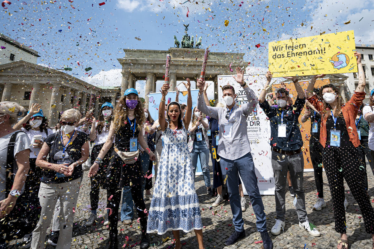 Konfetti-Aktion für Ehrenamtliche am Brandenburger Tor