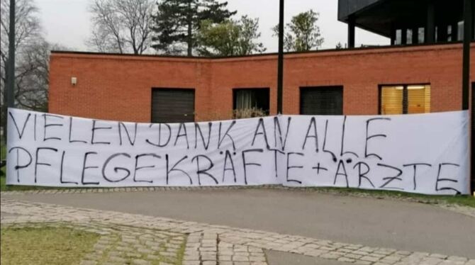 19:22 Uhr Ein Dankeschön-Banner hing vor der Ermstalklinik in Bad Urach. »Wir wissen zwar nicht von wem, die Mitarbeiterinnen und Mitarbeiter der Ermstalklinik haben sich jedoch sehr darüber gefreut«, schreibt Klinik-Pressesprecher Eckhard Zieker dazu. Wir finden auch: Schöne Geste!