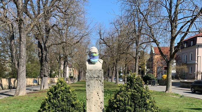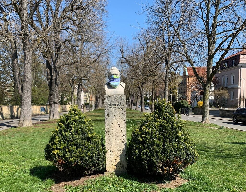 14:10 Uhr Die erste Kommunen in Deutschland verordnen bereits eine Maskenpflicht. In Reutlingen gibt es so etwas noch nicht, trotzdem sind immer mehr Peronen mit Mundschutz zu sehen. Darunter auch der prominente Reutlinger Schriftsteller Hermann Kurz. Nicht der echte natürlich, der ist schon seit fast 150 Jahren tot. Doch sein Denkmal in Planie trägt jetzt ebenfalls so eine Maske. Steht ihm ganz gut. (ege)