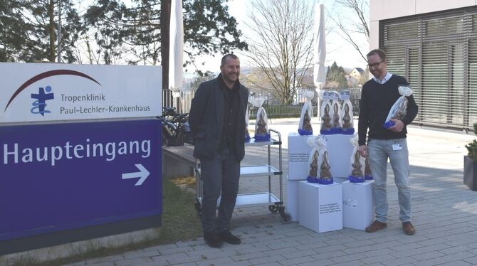 14:26 Uhr Das Reutlinger Unternehmen Reiff Technische Produkte liefert die nächste Ladung Nervennahrung an eine medizinische Einrichtung. Gestern war das Klinikum am Steinenberg dran, heute hat die Tübinger Tropenklinik 80 XXL-Schokohasen bekommen. Die Hasen seien ursprünglich für die Kunden gedacht gewesen, schreibt die Firma auf seiner Facebookseite. Aufgrund der Pandemie konnten die Süßigkeiten jedoch nicht ausgeliefert werden. (ege)