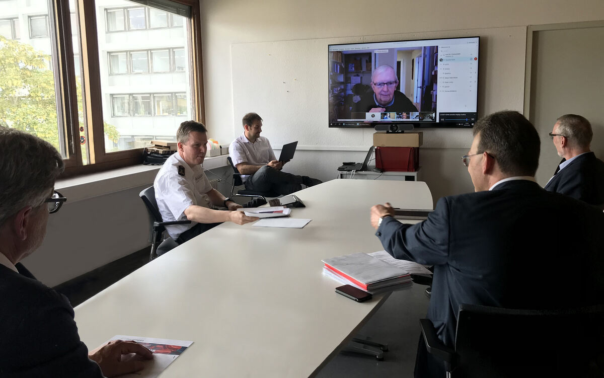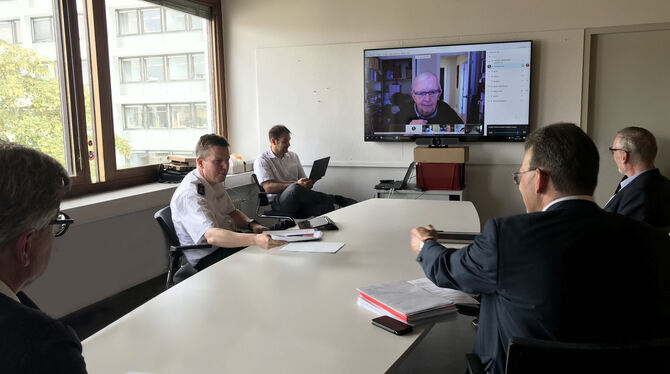 11:42 Uhr Da direkte Begegnungen zwischen den Partnerstädten derzeit nicht möglich sind, haben sich Bürgermeister Alexander Kreher und Bürgermeister Eddie Moran aus Reutlingens amerikanischer Partnerstadt Reading per Videokonferenz ausgetauscht. Auf beiden Seiten nahmen auch Vertreter der Gesundheitsämter, der Feuerwehr und der Ordnungsämter am virtuellen Austausch teil. Das Gespräch wurde live im amerikanischen Sender BCTV übertragen.