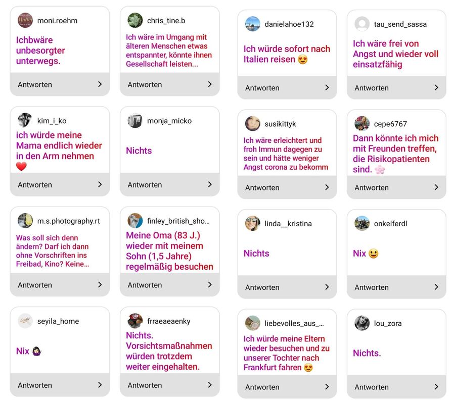 17:12 Uhr Seit rund zwei Wochen kann man sich bei Cegat in Tübingen auf Corona-Antikörper testen lassen. Wir haben die Follower auf dem GEA-Instagram-Kanal gefragt, was sich für sie ändern würde, wenn sie wüssten, dass sie schon Corona hatten. Die Antworten lassen sich grob in zwei Standpunkte aufteilen: Die einen betonen, dass sich für sie nichts ändern würde – »Vorsichtsmaßnahmen würden trotzdem weiter eingehalten«, schreibt ein Nutzer. Andere würden dann unbesorgter ihre Eltern oder Großeltern wieder besuchen, schreiben sie. Die Nähe zu Eltern und Großeltern fehlt mit zunehmender Pandemie-Dauer immer mehr: »Ich würde meine Mama endlich wieder in den Arm nehmen«, schreibt eine andere Nutzerin. (kk)
