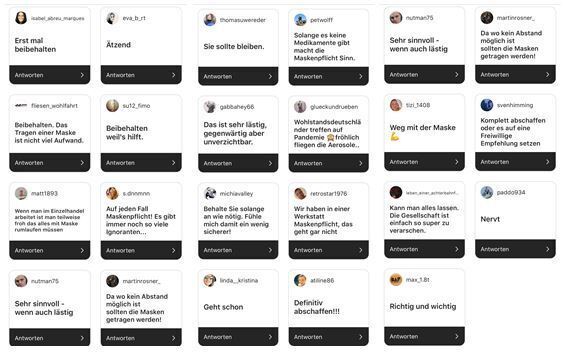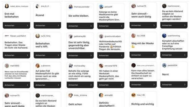 16:06 Uhr Nachdem eine Umfrage von YouGov ergeben hatte, dass die Mehrheit der Deutschen die derzeitige Maskenpflicht zwar befürworten, aber immerhn schon ein knappes Drittel diese am liebsten abschaffen oder zumindest lockern würde, haben wir auf den GEA-Kanälen in den sozialen Medien nach Meinungen unserer Nutzer gefragt. Auf Instagram hat ist das Bild sehr eindeutig. Die Mehrheit hat die gleiche Meinung wie der User »petwolff«, der schrieb: »So lange es keine Medikamente gibt, macht die Maske Sinn.« Die Nutzer, die die Maskenpflicht »definitiv abschaffen wollen«, waren klar in der Unterzahl. Auch auf der GEA-Facebook-Seite wurde fleißig diskutiert. Hier halten sich aber die Befürworter und Gegner der Maskenpflicht in etwa die Waage. »Ich frage mich, wo ist das Problem, eine halbe Stunde, während des Einkaufs oder im Bus/Zug eine Maske zu tragen«, schrieb etwa eine Nutzerin. Ein anderer hielt dagegen: »Schon vergessen, was wir alles vom Ausbruch bis zur Maskenpflicht geschafft haben?« (der)