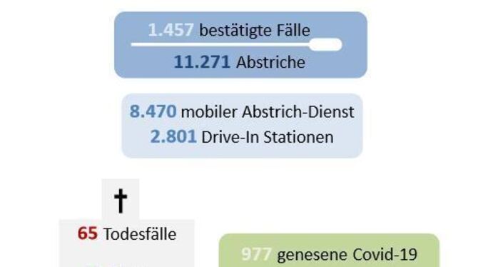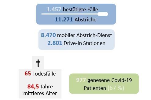 14:15 Uhr Es gab zwei Abstrichaktionen. Das Gesamtergebnis: 59 Prozent der Einrichtungen haben Covid-19-Fälle. Bedauerlicheweise seien von allen Todesfällen auch 71 Prozent in stationären Einrichtungen der Altenpflege zu beklagen. (zen)