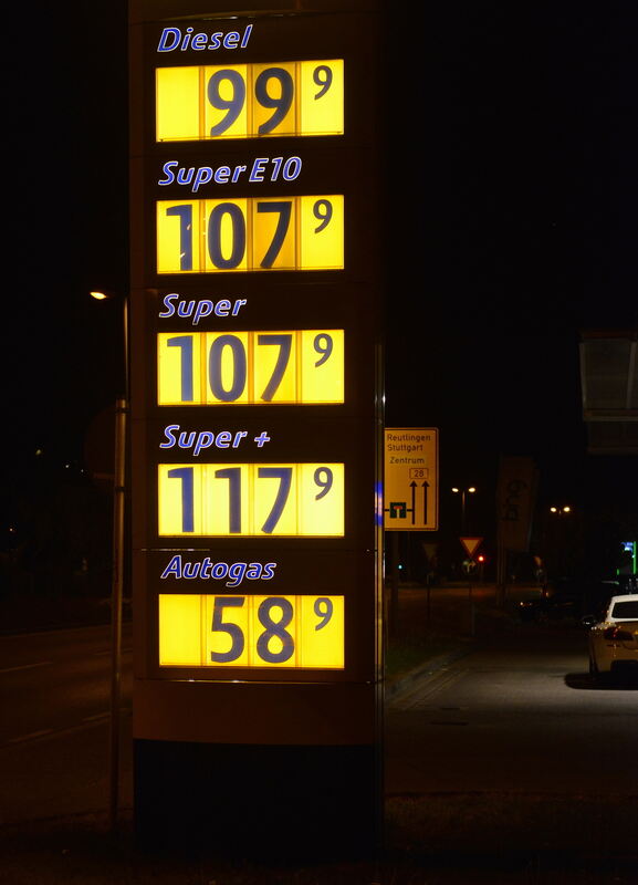 15:30 Uhr Die Ölpreise haben am Donnerstag weiter merklich zugelegt, aber an den Zapfsäulen sind Benzin und Diesel verlockend günstig. Unser Fotograf Markus Niethammer hat an der Reutlinger Konrad-Adenauer-Straße diese strahlenden Preise abgelichtet. Wie schmerzlich, dass längere Urlaubsfahrten gerade nicht möglich sind. (GEA)