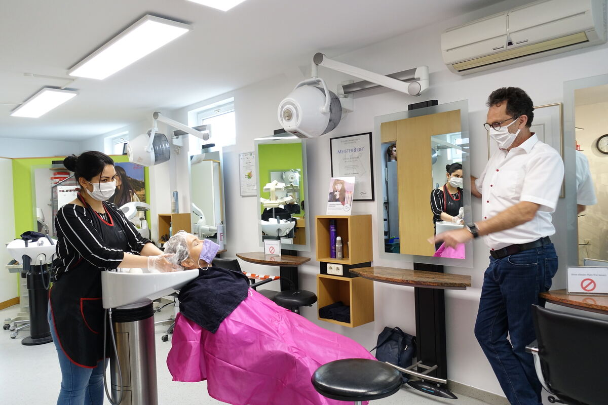 Die Dame, deren Haare gerade wieder korrekt gekürzt strahlen, wirkt ebenso rundum gut gelaunt. Seit dem 15. Februar sei sie nicht mehr zum Friseur gegangen, das sei »grausig« gewesen. Was Dieter Laible verrät, dürfte für die meisten Betrieb gelten, »der Terminkalender ist die nächsten 14 Tage voll«. Auf die Frage, wie hoch wohl sein Verlust durch die Zwangspause in der Corona-Krise ausfällt, antwortet der Kreishandwerksmeister voller Mitgefühl. »Friseure, die Miete zahlen müssen, haben jetzt größere Probleme als ich, der in eigenen Räumen arbeitet«.