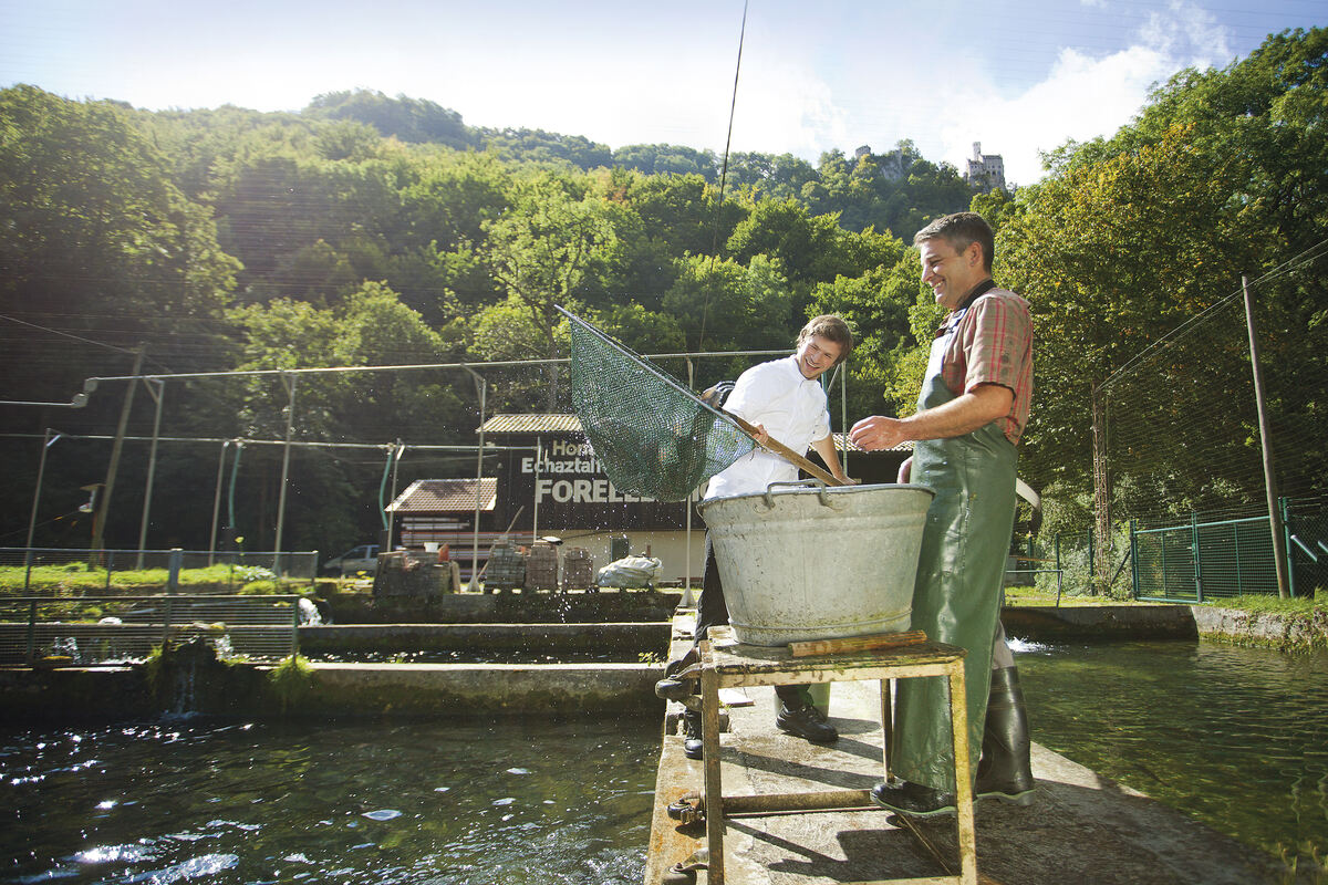 8:54 Uhr Gerhard Gumpper vom Forellenhof »Rössle« ist der Mann, der für den Nachschub mit den leckeren Echazforellen sorgt. Der Züchter hat zurzeit mehr Fische im Teich, als er braucht. Knapp 100 000 werden es sein, die er mit seiner Mannschaft in der modernen Anlage mit den drei Fließkanälen und weiteren Teichen großzieht. Forellen, Lachsforellen und Saiblinge wachsen dort heran – fürs hauseigene Restaurant, für Abnehmer aus der Gastronomie und für den Verkauf. Und da wird schon klar, wo derzeit Gumppers Problem liegt: Seine Absatzmärkte sind durch das Coronavirus weggebrochen. Die ganze Geschichte lesen Sie hier. (us)