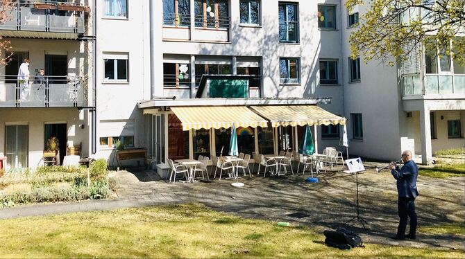 9:20 Uhr Immer wieder gibt es gerade kleine Freiluftkonzerte, der Not durch die Corona-Krise geschuldet. Zuhörer sind entzückt - auch Pfullingen. (GEA)