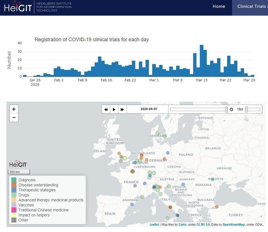 12:30 Uhr Einen Überblick über die globalen klinischen Forschungsaktivitäten zum Coronavirus und der damit verbundenen Atemwegserkrankung COVID-19 gibt eine Online-Karte, die Geoinformatiker der Ruperto Carola in Kooperation mit Medizinern des Universitätsklinikums Heidelberg entwickelt haben. Erreichbar ist die Karte unter https://covid-19.heigit.org/clinical_trials.html (pm)