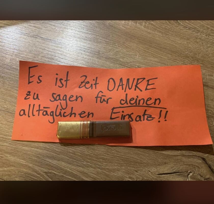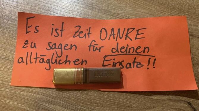 16:25 Uhr Seit Sonntagabend finden die Mitarbeiterinnen und Mitarbeiter der Albklinik in Münsingen eine Dankesbotschaft an den Windschutzscheiben ihrer Autos und freuen sich sehr darüber! Leider wissen wir nicht, von wem die Nachricht stammt, auf jeden Fall eine sehr wertschätzende Geste. (pm)