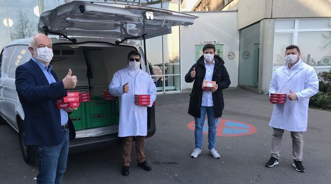 17:10 Uhr Die Firma Schmälzle Fleischwaren GmbH aus Pfullingen spendet während der Corona-Krise dienstags und mittwochs jeweils 100 Essen für das Klinikum am Steinenberg Reutlingen, 40 Essen für die Ermstalklinik Bad Urach und 20 Essen für die Albklinik Münsingen. »Die Gerichte sollen in erster Linie den Mitarbeiterinnen und Mitarbeitern zugutekommen, die besonders mit der Corona-Krise zu tun haben. Wir wollen damit unseren Dank an die Heldinnen und Helden der Krise zum Ausdruck bringen, die in dieser schweren Zeit Außergewöhnliches leisten«, so Patrick Schmälzle bei der Essen-Übergabe. (pm)