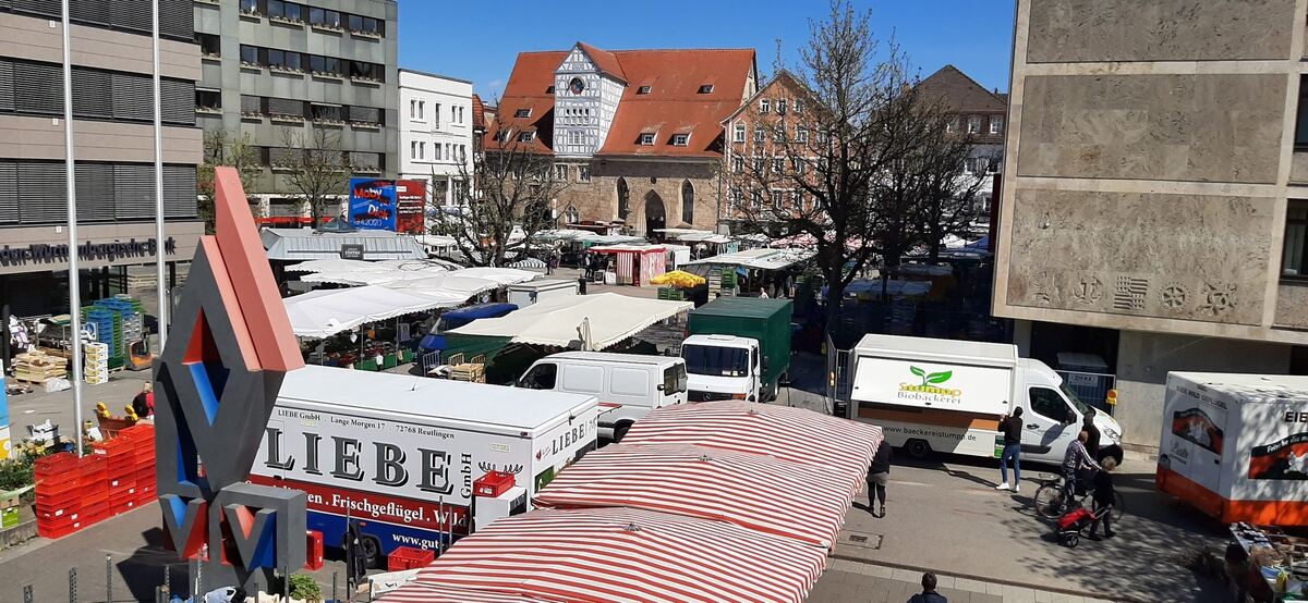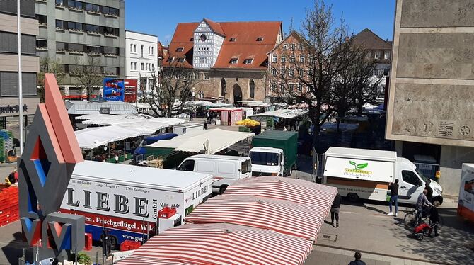 17:20 Uhr Der Wochenmarkt in Reutlingen findet weiter statt. Eine der Sicherheitsmaßnahmen: Die Stände stehen weiter auseinander. Trotzdem war heute viel los. Die Linke Liste fordert nun, den Wochenmarkt in den Bürgerpark verlegen. (pm)