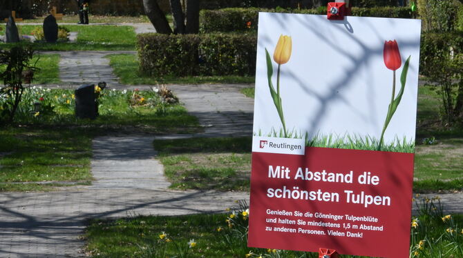 9:10 Uhr Die dieser Tage beginnende Gönninger Tulpenblüte darf mit gebührendem Respekt - und Abstand – bewundert werden. (mey)