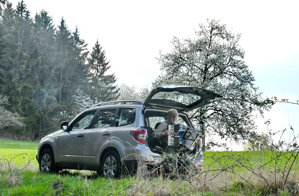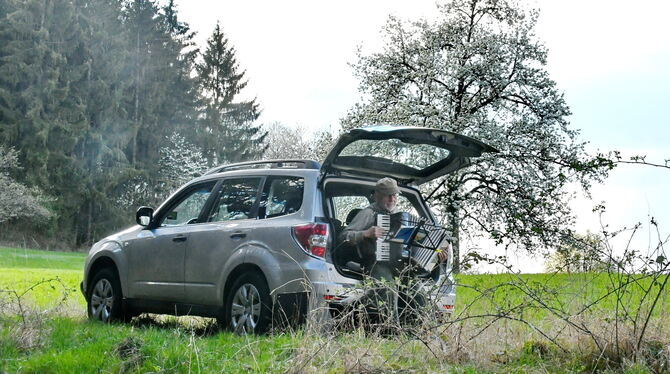 17:33 Uhr Ein schönes Freiluft-Konzert: Christoff Herrmann erfreute am Mössinger Wanderparkplatz »Unter den Linden« die Osterspaziergänger mit seinem Akkordeonspiel. Herrmann, fast ein Vierteljahrhundert aktiv im Harmonika-Club, ist Vorstand im Kulturcafé Chamäleon und spielt bei zahlreichen Anlässen ehrenamtlich im Stadtgebiet. (mey)