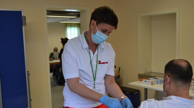 10:00 Uhr Dort, wo sonst die Beschäftigten der Fertighausfirma Schwörer in Oberstetten ihre Mahlzeiten einnehmen, herrschte am Samstag ein völlig anderes Bild: Die Kantine war für einen Tag zum Impfzentrum umfunktioniert worden, in dem innerhalb von fünf Stunden 400 Dosen Astrazeneca verabreicht wurden. (in)
