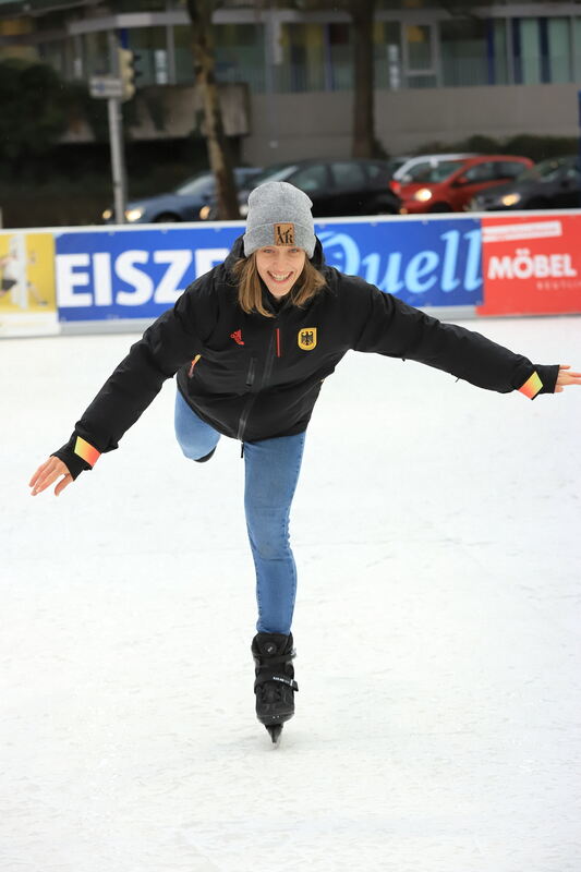 Wie sich die Eninger Bahnrad-Olympiasiegerin auf der Eisbahn schlägt