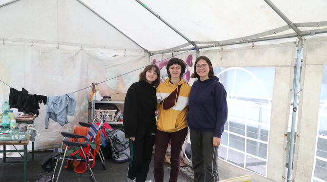 REUTLINGEN. Das Wetter ist nicht das beste, um im Zelt unter freiem Himmel zu nächtigen, aber das hält die jungen Aktivistinnen und Aktivisten von Fridays for Future nicht ab, vor dem Rathaus Reutlingen wieder auf Klimathemen aufmerksam zu machen.