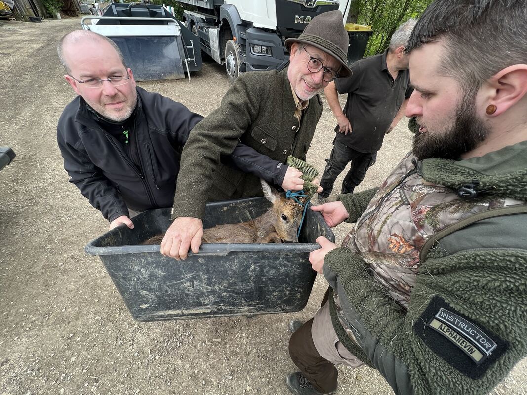 Der Rehbock gab aber nicht auf. »Er war sehr wehrhaft«, sagt Bögle. Drei Jäger haben sich über das etwa 18 Kilogramm schwere Tier gelegt, einer nahm es in den Schwitzkasten. Als ein Tuch über seinen Kopf gelegt wurde, beruhigte sich der Bock endlich und ließ sich fangen. »Ihm ist nichts passiert, er ist nur sehr erschöpft«, so der Jagdpächter. Der verkündet: »Nachdem er so viel durchgemacht hat, haben wir uns dazu entscheiden, ihm die Freiheit zu schenken«.