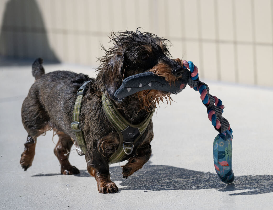 Weniger actionreich, dafür umso gemütlicher ging es bei Bulldogge Hugo zu. Sein Frauchen Kathrin Schwinge aus Frickenhausen versuchte, ihn mit der Leine sanft ins Wasser zu locken. Auf die Frage, ob er denn keine Wasserratte sei, antwortete Schwinge: »Es geht so.« Und ergänzte humorvoll: »Er ist eine Katze, gefangen im Körper eines Hundes und möchte lieber schmusen.« Wie ein Wirbelwind dagegen war Dackel Luise dauernd in Bewegung und mit Apportieren ihres Spielzeugs beschäftigt. Am Ende des Tages waren sich alle Besucher einig: Das Hundeschwimmen im Wellenfreibad Reutlingen war auch dieses Jahr ein voller Erfolg – ein tierischer Abschluss der Badesaison, der längst Kultstatus erreicht hat. (GEA)