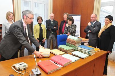 »Sooo viele Akten«: Die SPD-Experten Simone Geßmann (von rechts), Nikolaos Sakellariou, Ute Vogt und Rainer Stickelberger sind beeindruckt von der Arbeit der Reutlinger Sozialrichter Hans Tröster, Bettina Seidel, Holger Grumann und Cornelia Ott.