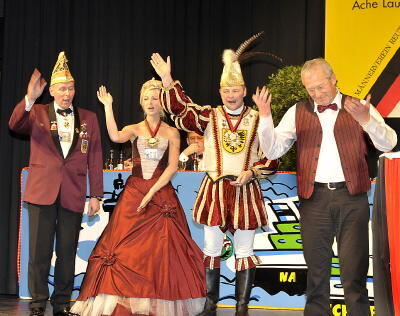 Ordensverleihung: (von links) Sitzungspräsident Ralph Keck, Melanie I. und ihr Werner II. sowie Josef Schuler.