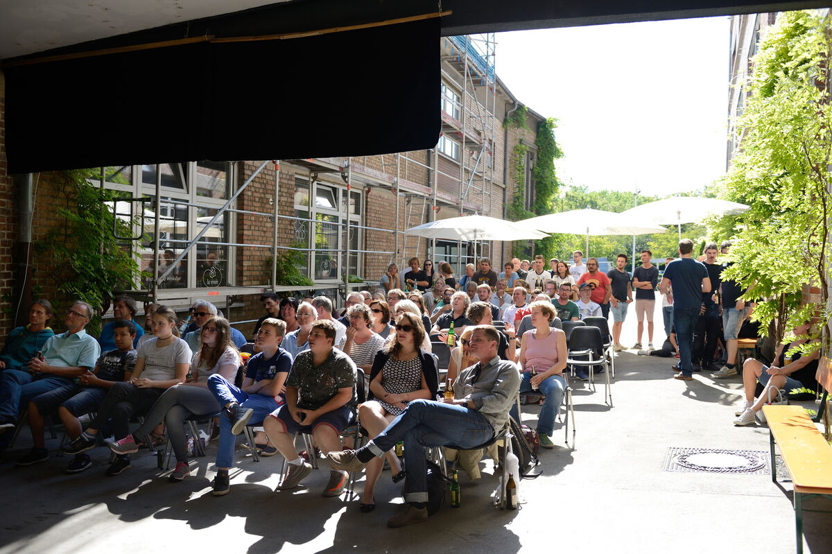 REUTLINGEN. Der große WM-Traum ist geplatzt. Davon waren die Public Viewer nicht ausgegangen: »3 zu 1«, so schätzte zumindest Robert Metzger kurz vor Spielbeginn den Punktestand für Deutschland ein. Aufgeregt und mit kribbelnden Beinen nahmen die Zuschauer Platz vor der großen Leinwand, direkt vor den Toren des Programmkinos Kamino und harrten der Dinge. Und das Harren wurde unendlich lang und das Radler immer fahler im Geschmack – denn die Sonne brutzelte herunter und kein Tor fiel. Nicht sicher, ob die Rötung der Ohren vom Sonnenbrand oder von der Aufregung her stammte, nahm man zunehmend schüttelnde Köpfe und Stoßgebete gen Himmel wahr.
