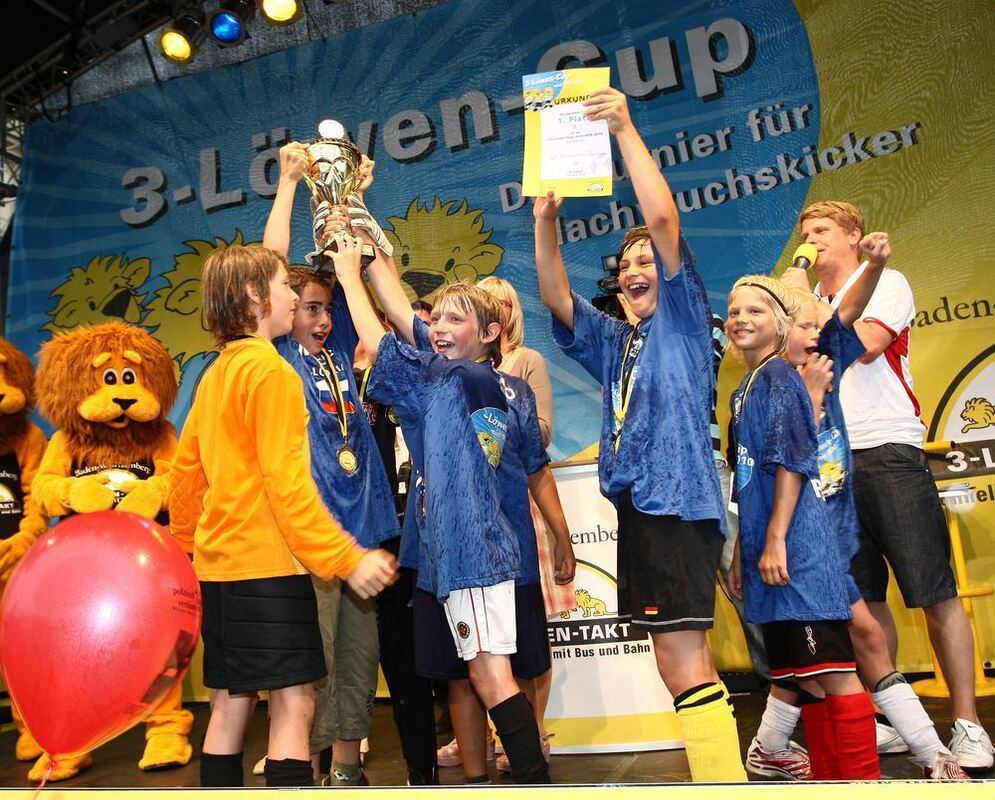 »Da ist das Ding!« Die Römerschanzschüler feiern ihren Titel mit Pokal und Urkunde.