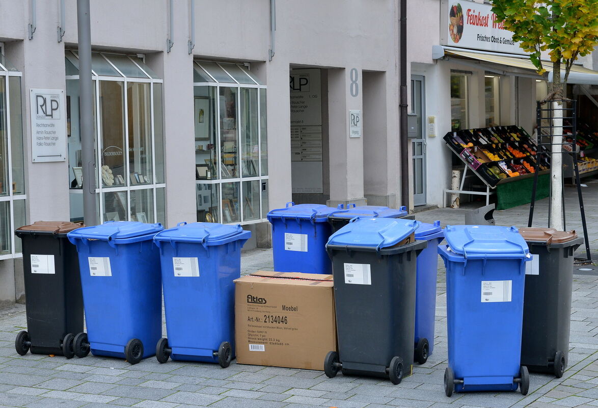 Altpapiertonnen in der Reutlinger Metzgerstraße.