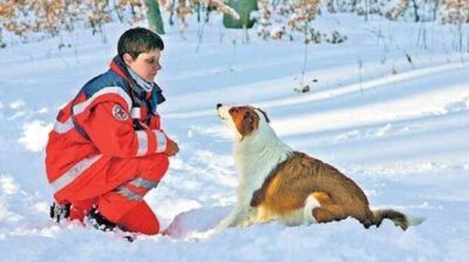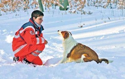 Training im Schnee bei Sankt Johann: Ausbildungsleiterin Katrin Kolbe mit einer jungen Collie-Hündin.