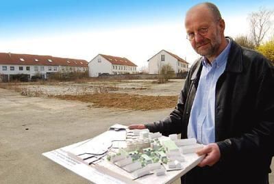 Thomas Krötz mit dem Modell des »Generationenprojekts«, das auf dem Gelände des ehemalingen Baugeschäfts entstehen soll. FOTO: MARKUS NIETHAMMER
