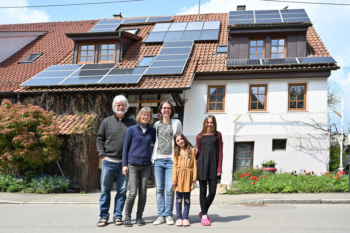 Die Reichenecker Willi Igel und Eva Kuhn (Erster und Zweite von links) haben sich altershalber im eigenen Haus verkleinert. Nach Umbau und Renovierung wohnen sie jetzt mit einer fünfköpfigen Familie (im Bild: Petra Haas und zwei ihrer drei Kinder) sowie zwei jungen Frauen unter einem Dach. FOTO: PIETH