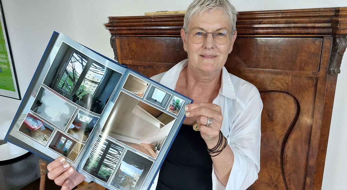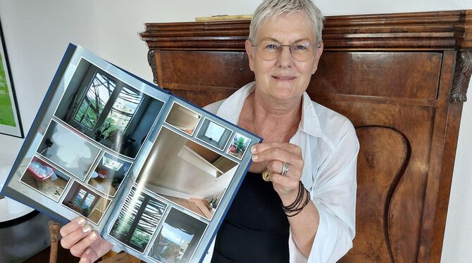 Schmerzliche Erinnerungen im Album: Gabriela Thoma mit Fotos ihres ruinierten Obergeschosses.