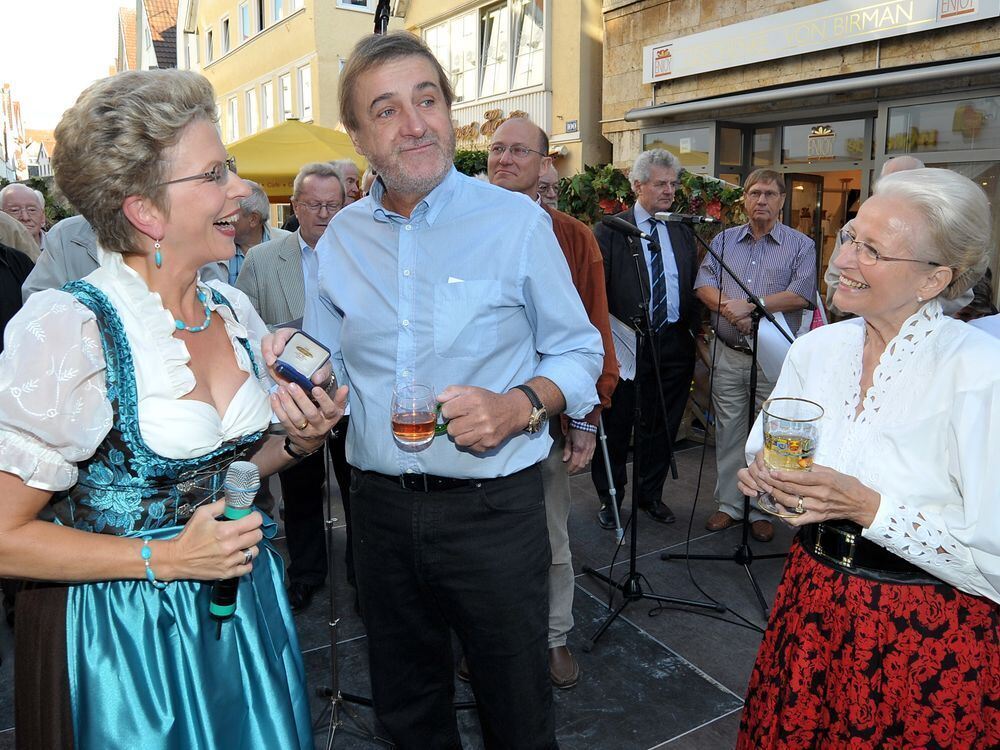 Überrascht: Julius Vohrer bei der Überreichung der List-Medaille durch OB Barbara Bosch. Rechts Margret Grimm.