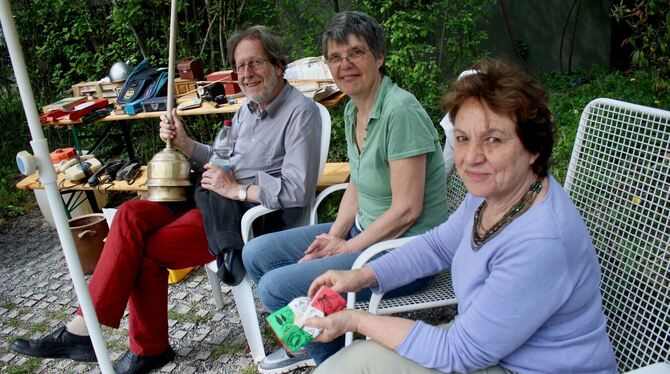 Nachbarn überall: am Gemeinschaftsplatz an der Mozartstraße, im Wohnwagen oder vor der eigenen Haustür: Der Flohmarkt zeigte, was das Quartier lebenswert macht. FOTOS: SPIESS