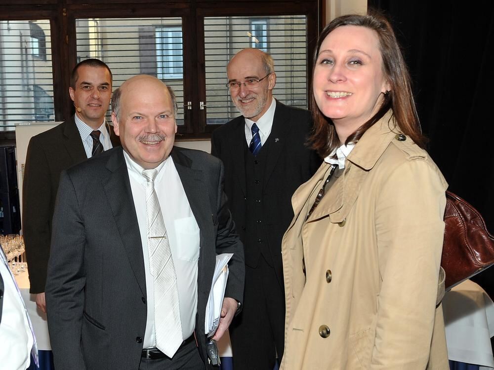 Die Akteure: Moderator Marcus Mockler, GEA-Verleger Valdo Lehari jr., Prälat Dr. Christian Rose und Melanie Huber von »evangelisch.de« (von links).